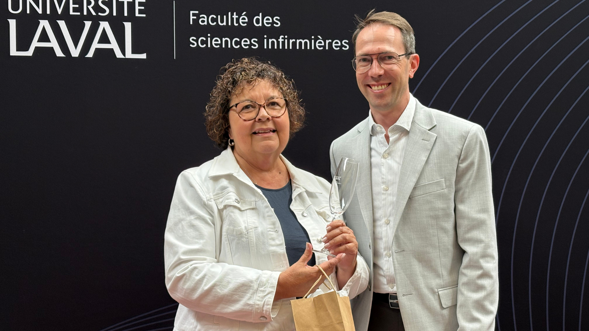 L’événement a également été l’occasion d’honorer Dominique Carré, récemment retraitée. Dominique a occupé le poste de coordonnatrice à l’administration à la FSI pendant près de cinq ans, après 16 années de service à l’Université Laval.