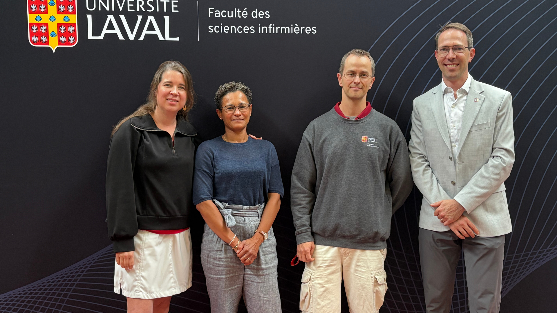 Nancy Leblanc, Ginette Mbourou, Marie-Lou Simard et Michel Doré, qui atteignent le remarquable jalon de 20 ans au sein de notre faculté.