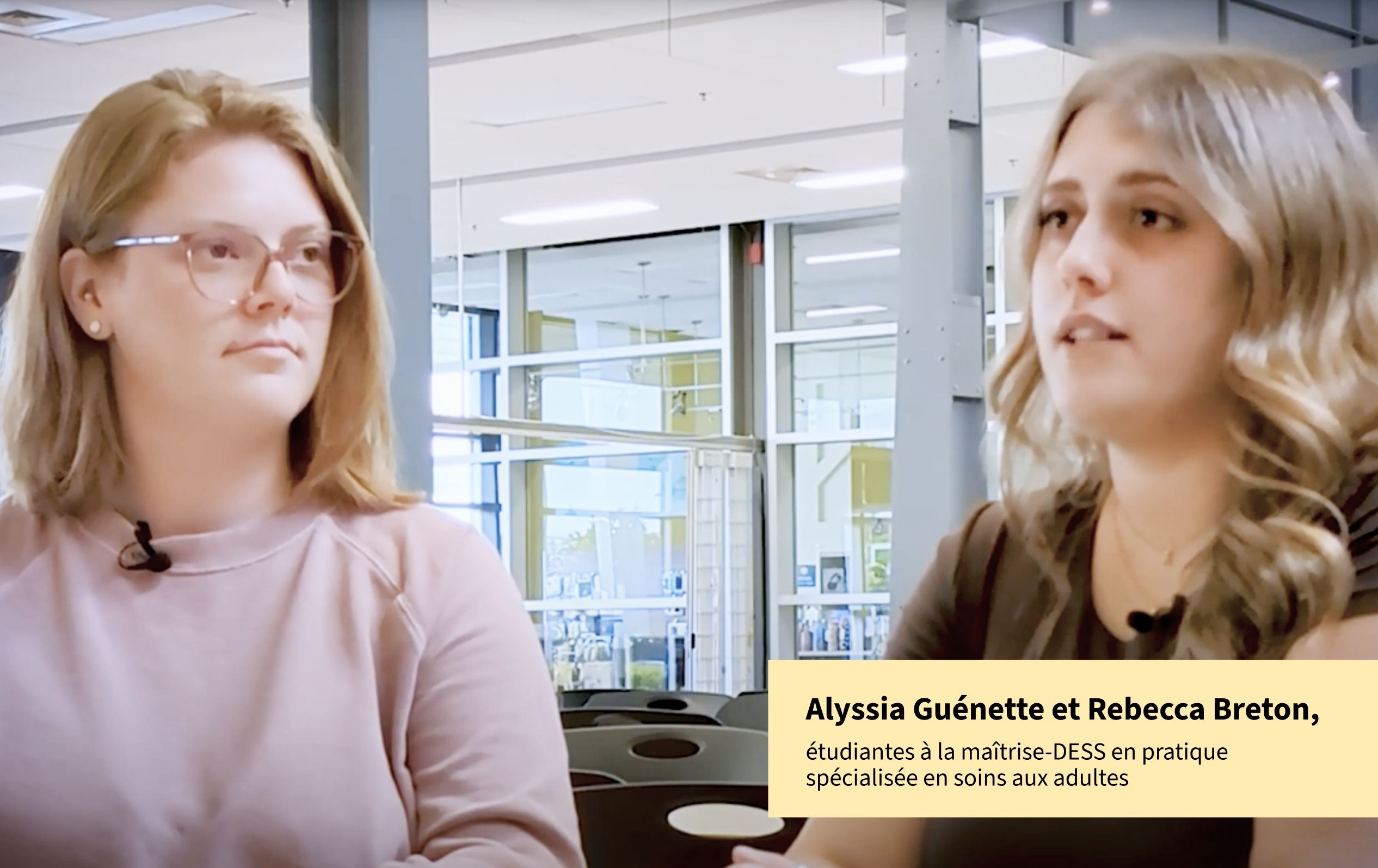 Alyssia Guénette et Rebecca Breton, étudiantes à la maîtrise-DESS en pratique spécialisée en soins aux adultes, nous expliquent ce qu’est cette spécialité qui s’adresse à une clientèle de 18 ans et plus nécessitant des soins de spécialité ou de surspécialité. Elles partagent également les raisons qui les ont encouragées à choisir l’Université Laval pour leur formation en vue de devenir infirmières praticiennes spécialisées. Découvrez ce qui les a motivées!