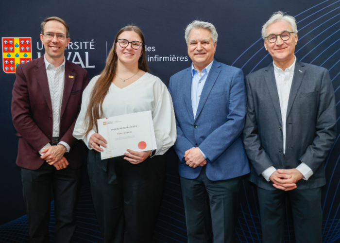La Bourse d’études supérieures de la Faculté des sciences infirmières (3 000 $) a été remise à Anouk Bérubé, étudiante au doctorat en santé publique et communautaire, en reconnaissance de son excellence et de son engagement en recherche.