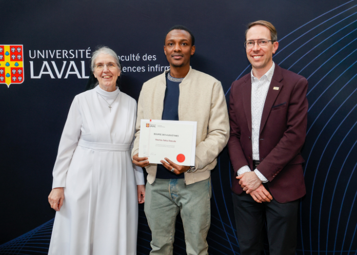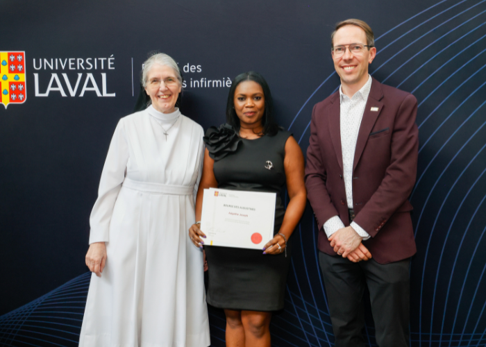 Trois Bourses des Augustines (10 000 $ chacune) ont été décernées à Nouhou Salou Daouda, Adgathe Joseph et Gill-Christ Bahouncole, étudiantes et étudiants à la maîtrise en sciences infirmières. Ces bourses témoignent de l’engagement des Augustines envers l’éducation, le soin et la relève infirmière.