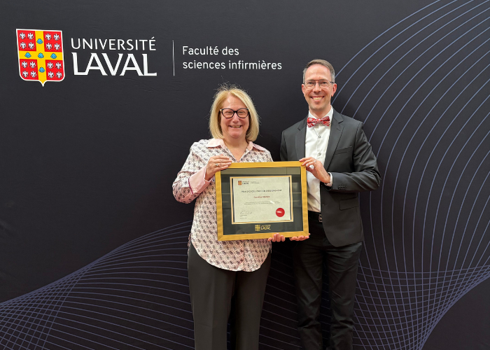 Le Prix d’excellence en enseignement pour le personnel enseignant a été remis à Caroline Maltais, responsable de formation pratique, pour son rôle déterminant dans l’encadrement des stages, son leadership pédagogique et sa contribution remarquable au projet interfacultaire sur la spiritualité dans la pratique infirmière.